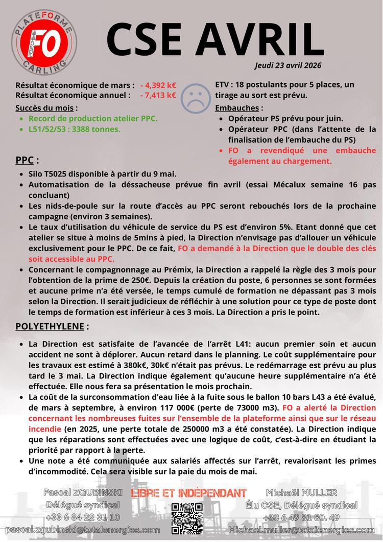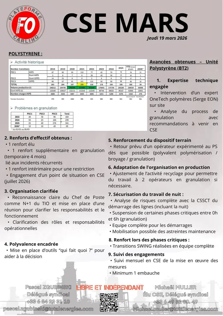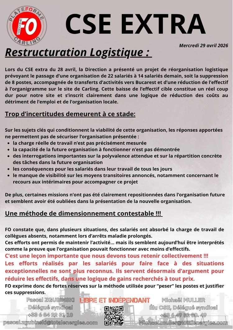 Assemblée du syndicat FO Carling TotalEnergies du 18 mars 2026